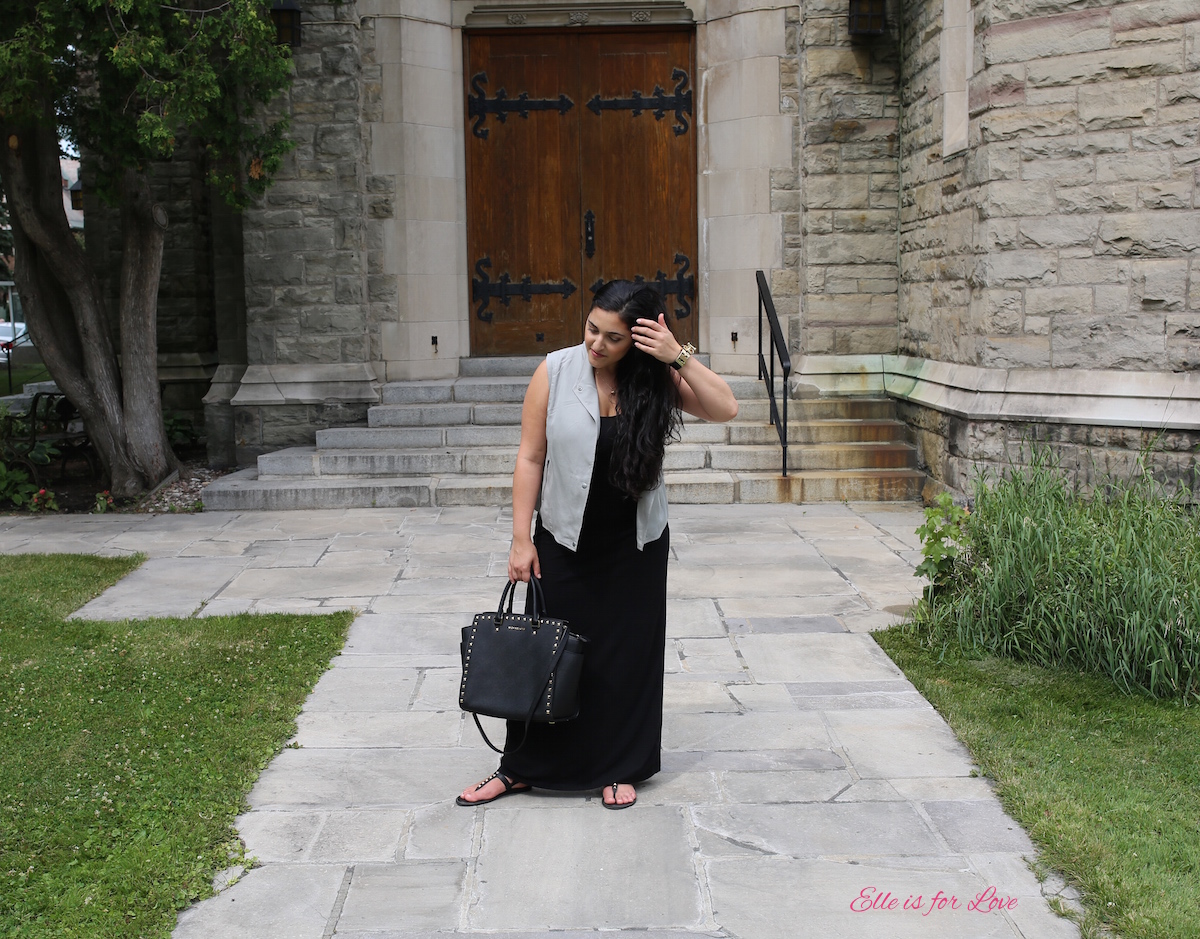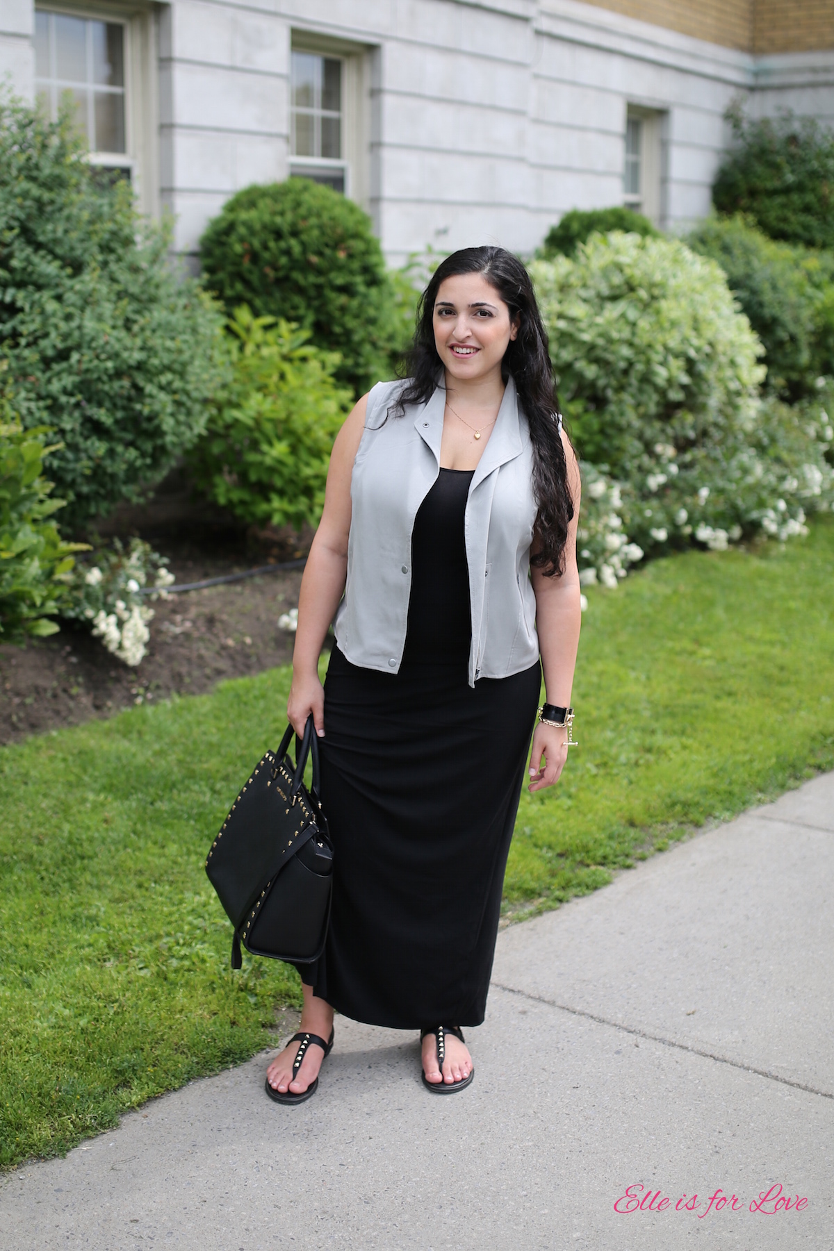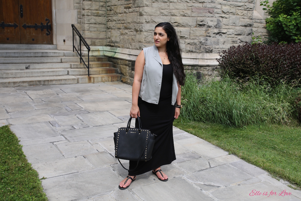 I have quite a few military green pieces in my wardrobe, but this vest has become one of my favorites because it’s so easy to throw on, and can transform a simple outfit to a more edgy and fresh outfit. I’m really just wearing a simple, black maxi dress, but the military green vest makes such a big difference in transforming the outfit into something fashionable that shows my personal style.